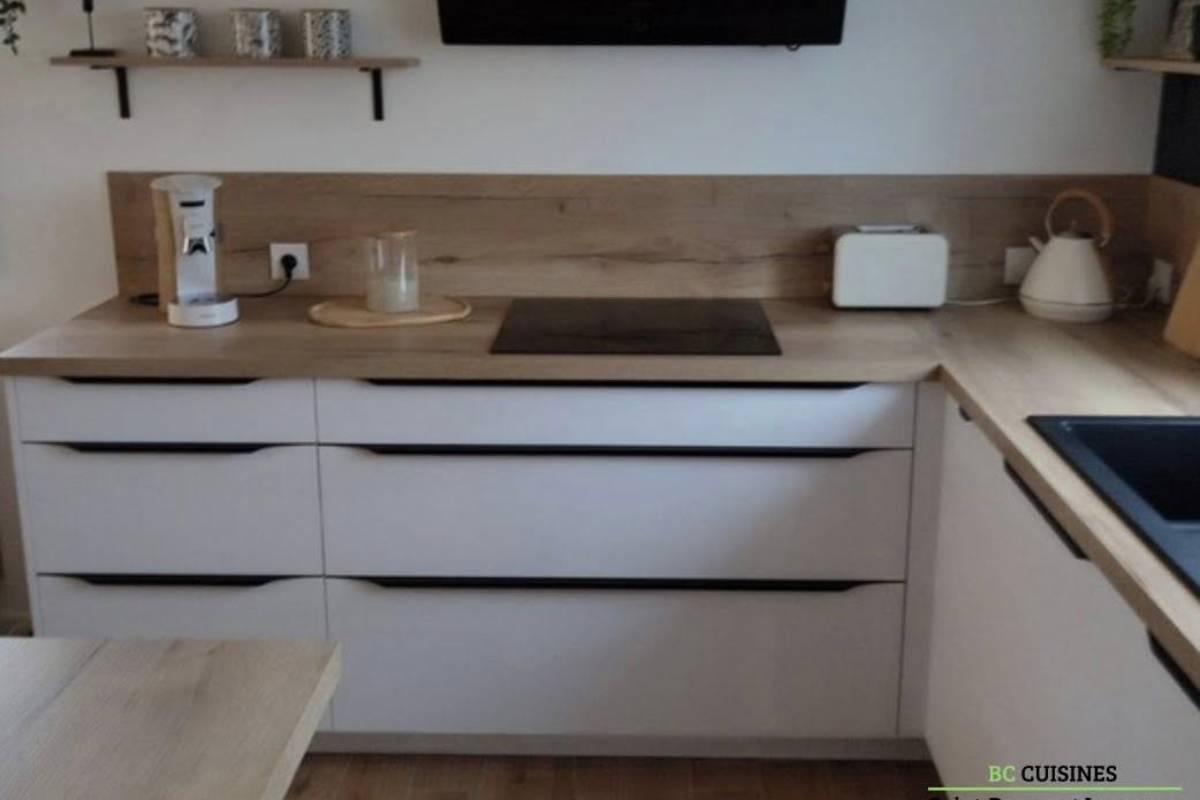 Dans un nouveau quartier de Saint-Renan, cette réalisation démontre qu’une cuisine n’a pas besoin d’en faire trop pour affirmer son caractère.