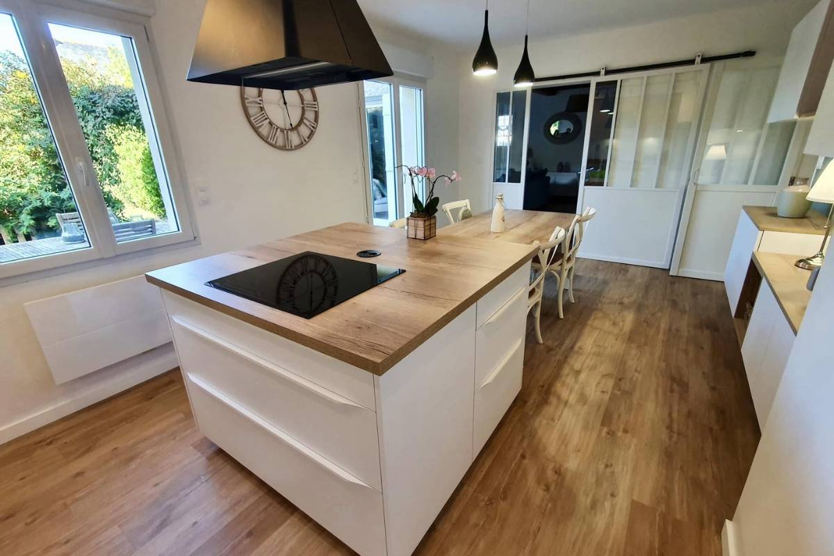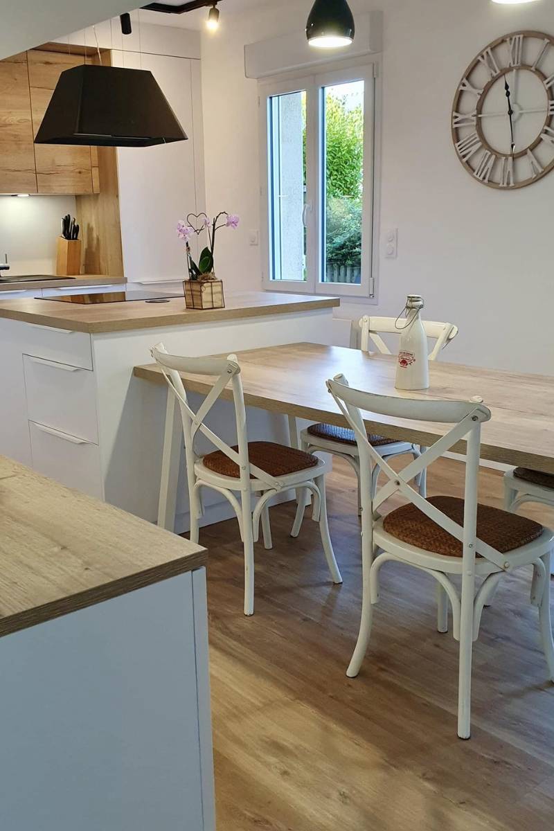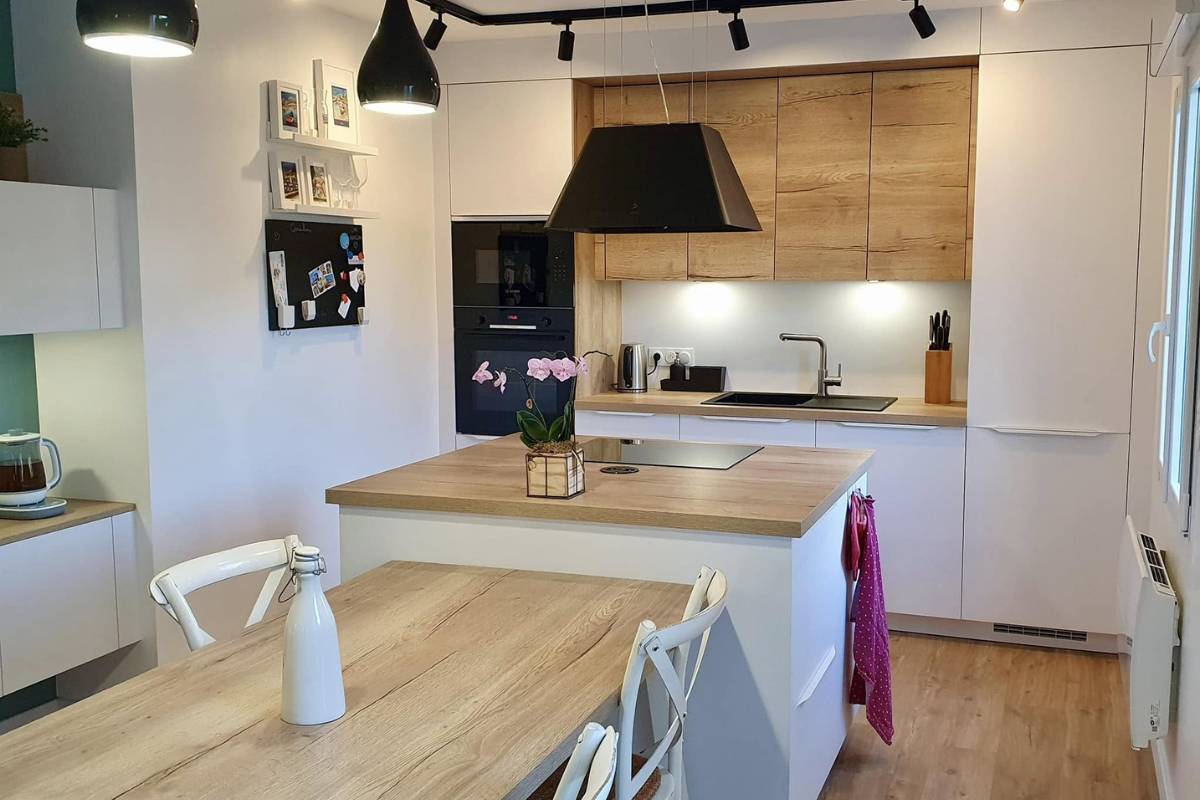 Une réalisation sobre et élégante, où le contraste subtil entre le blanc et le bois donne toute sa personnalité au projet.